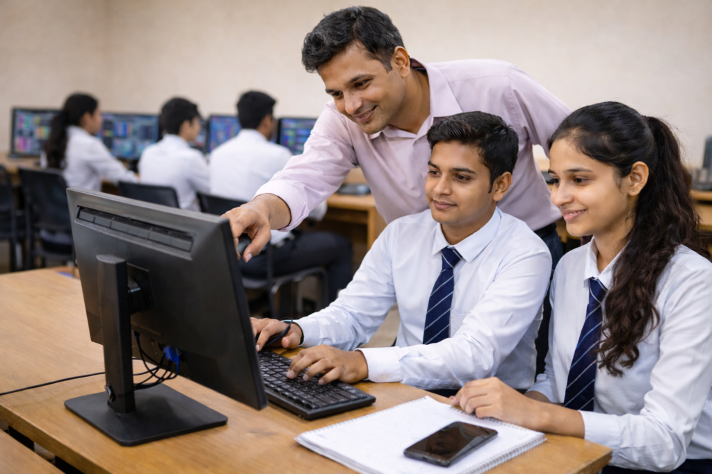 Students receive hands-on training in Java and Python, focusing on coding logic, problem-solving, and real application development.